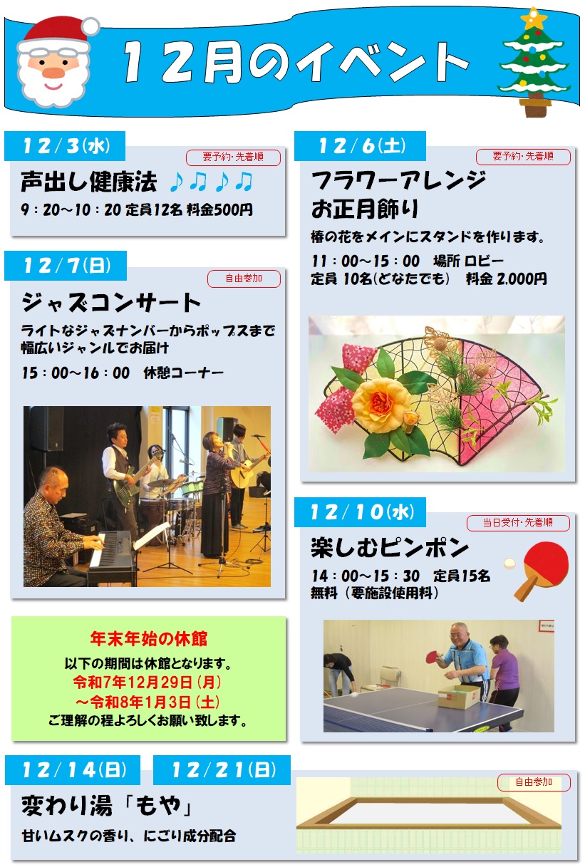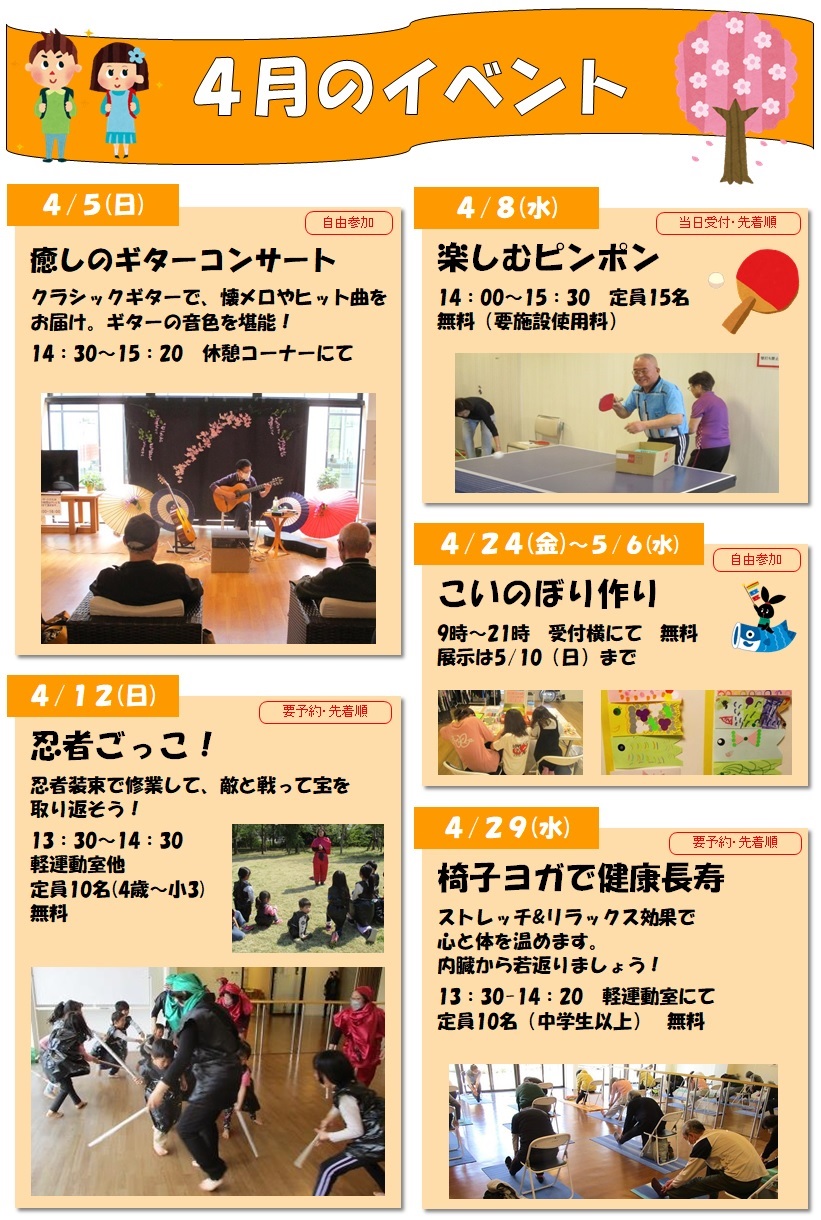 ※プログラム内容や開催場所、曜日、時間は利用者ニーズ、開催者、施設状況により変更の可能性があります。