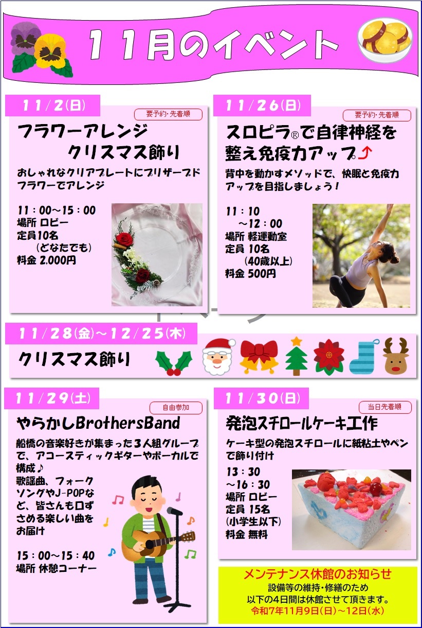 ※娯楽室・フリースペースなど有料ゾーンで実施するイベント参加には原則として別途、施設使用料が必要となります。